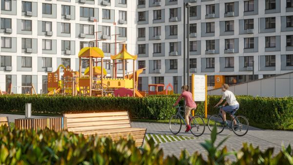 В жилом комплексе открыты 6 детских садов, 3 школы, одна из которых — инженерно-технологический лицей на 1100 учеников, и собственная поликлиника. А в просторных дворах достаточно места для детских игр на оборудованных площадках.